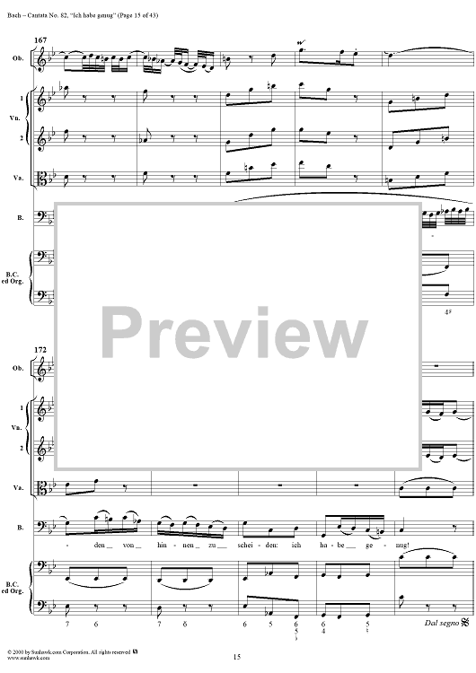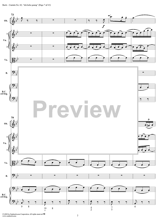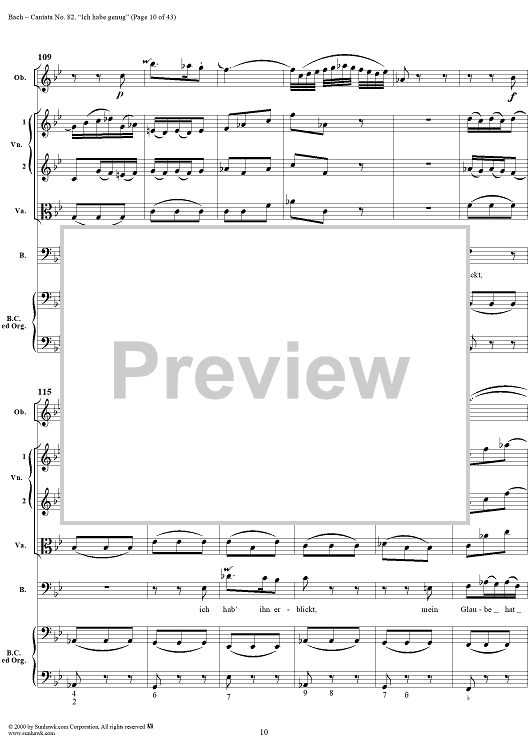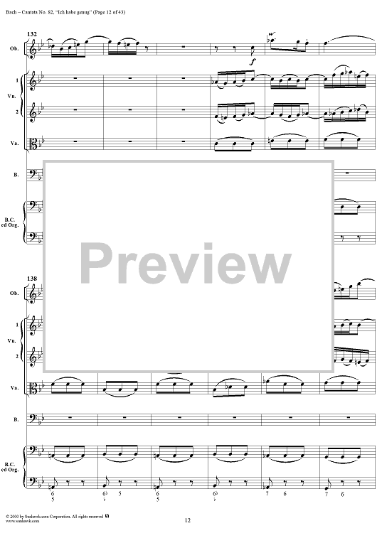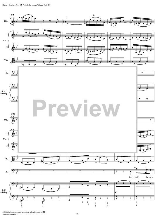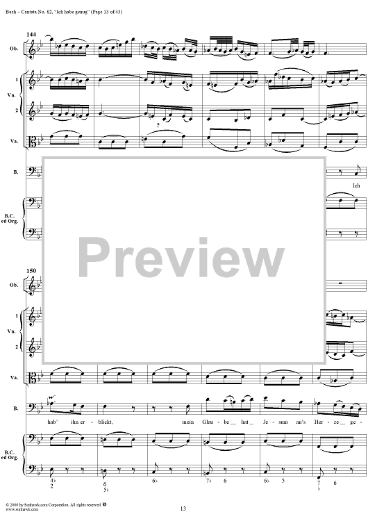 Digital Sheet Music for Cantata No. 82: "Ich habe genug," BWV82 by Johann Sebastian Bach scored for Full Score; id:276344