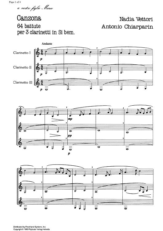 Digital Sheet Music for Canzona by , Antonio Chiarparin, Nadia Vettori scored for 3 Clarinets in B-flat; id:333901