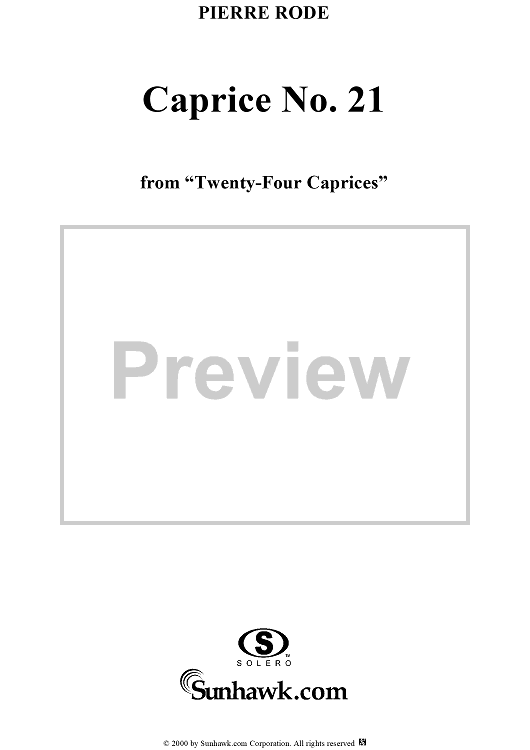 "Caprice No. 21 from "Twenty-Four Caprices"" Sheet Music by Pierre Rode