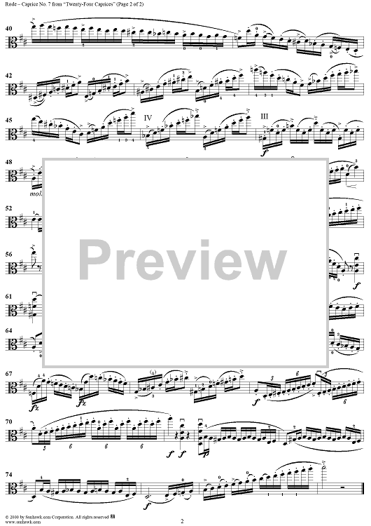 Digital Sheet Music for Caprice No. 7 from "Twenty-Four Caprices" by Pierre Rode scored for Viola Solo; id:255764