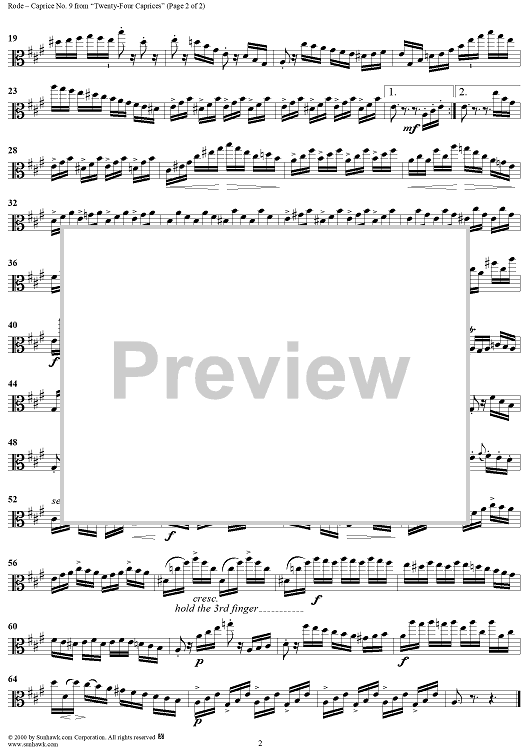 Digital Sheet Music for Caprice No. 9 from "Twenty-Four Caprices" by Pierre Rode scored for Viola Solo; id:255828