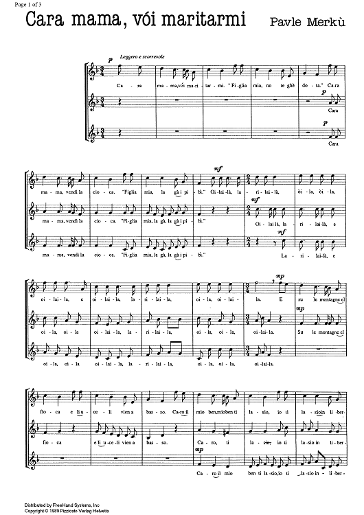 Digital Sheet Music for Cara mama, vói maritarmi by , Pavle Merkù scored for Female Chorus; id:333931