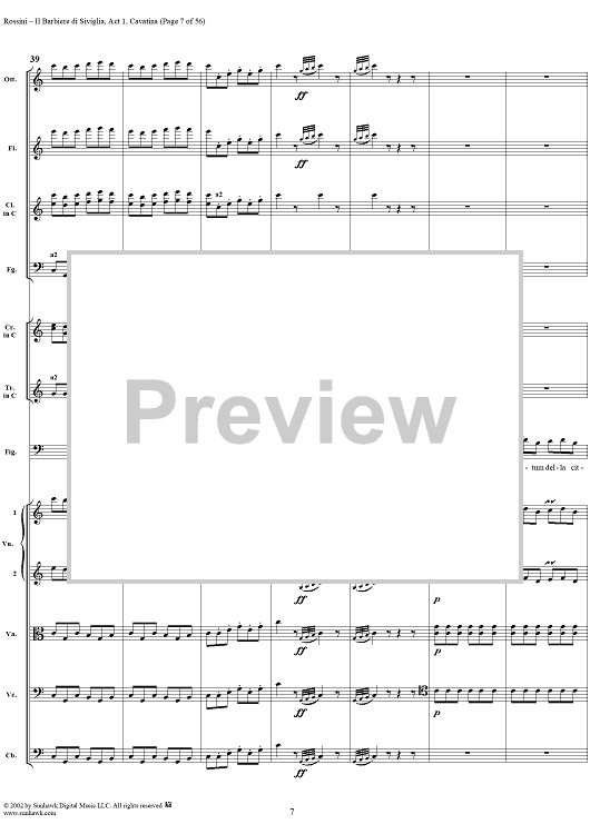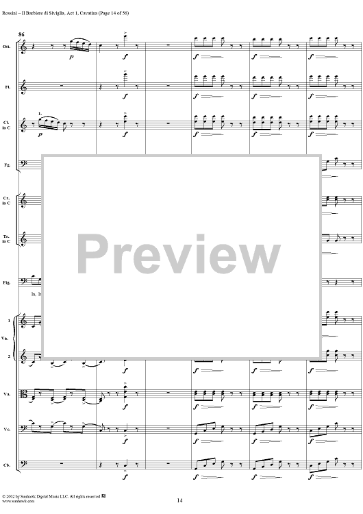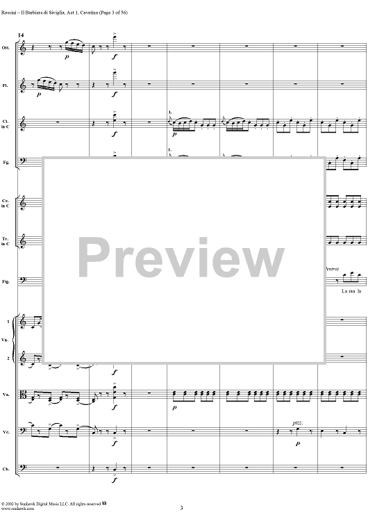 Digital Sheet Music for Cavatina: Largo al factotum, No. 4 from "Il Barbiere di Siviglia" - Full Score by Gioachino Rossini scored for Voice and Orchestra; id:290474