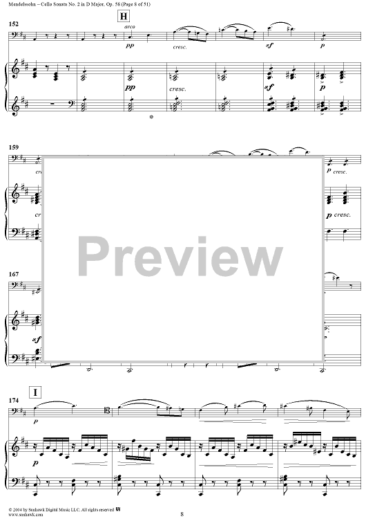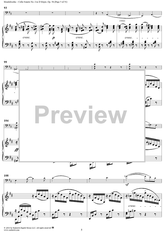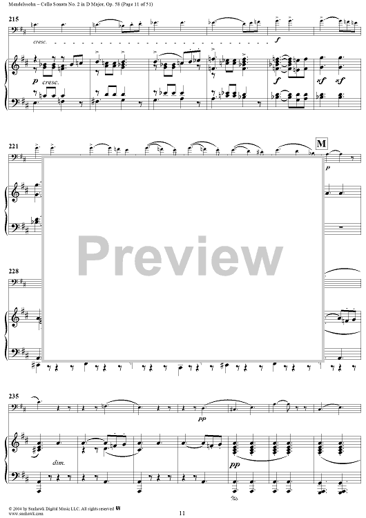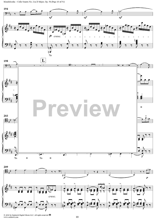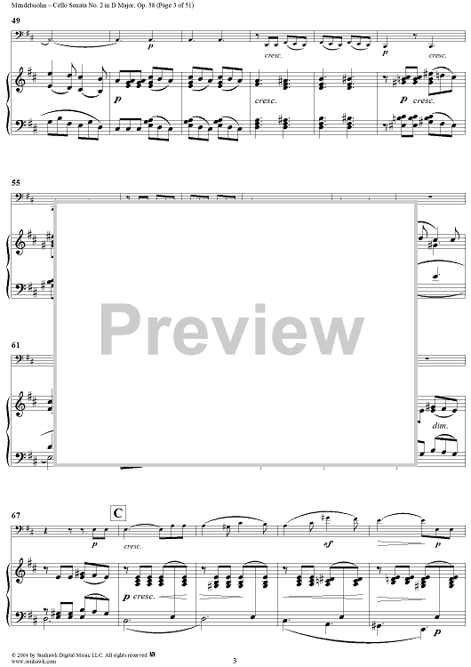 Digital Sheet Music for Cello Sonata No.2 in D major Op.58 - Score by Felix Mendelssohn scored for Cello/Piano; id:252192