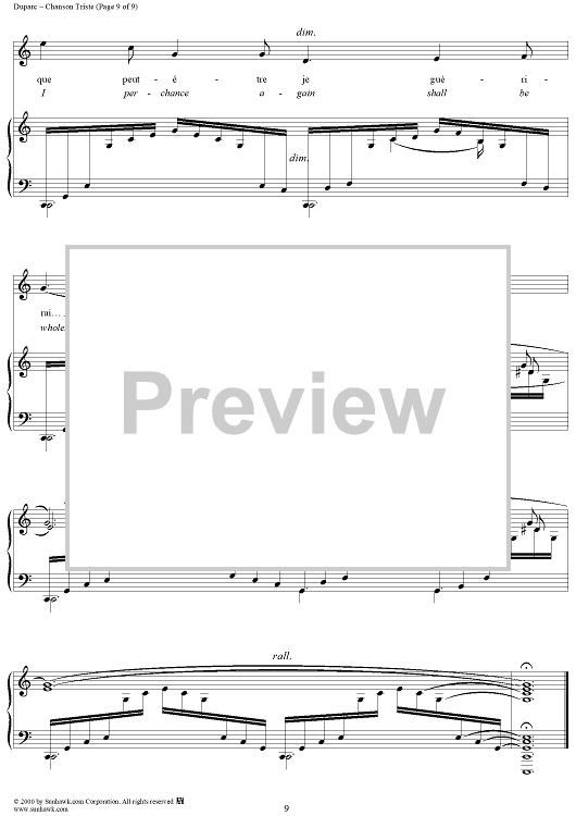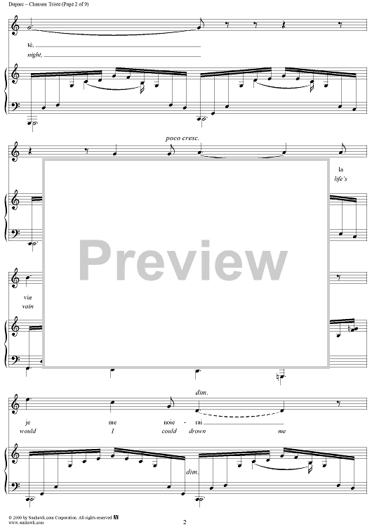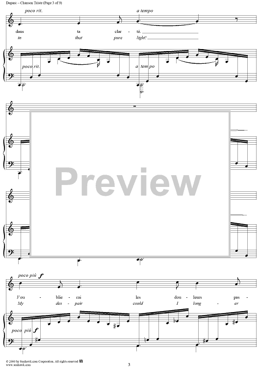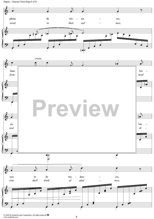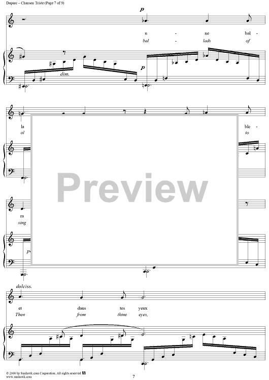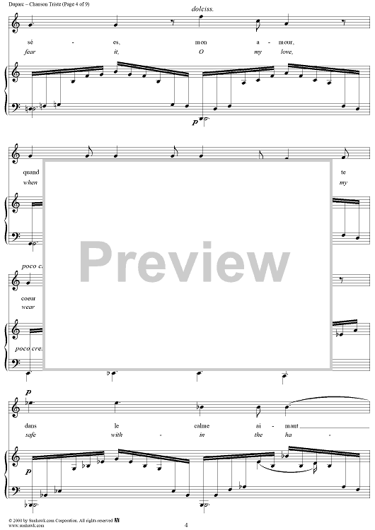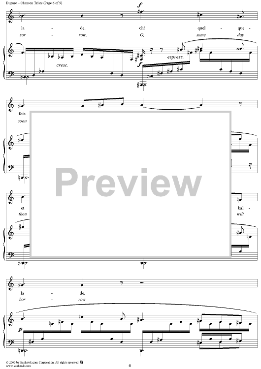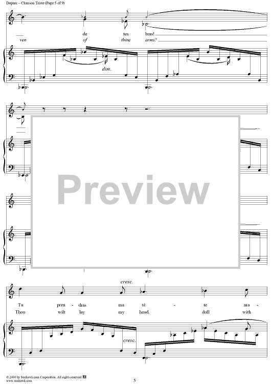 Digital Sheet Music for Chanson Triste (A Song of Sorrow) by Henri Duparc, Jean Lahor scored for Piano/Vocal; id:176624