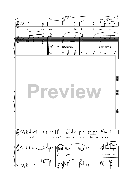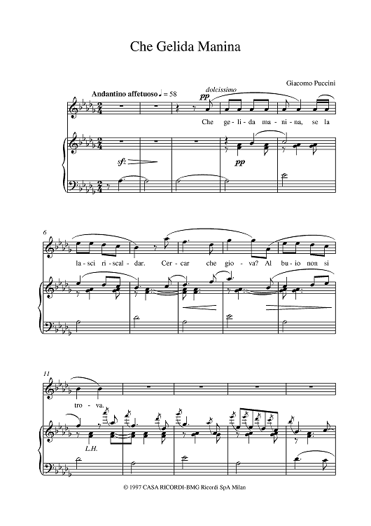 Digital Sheet Music for Che Gelida Manina by Giacomo Puccini scored for Piano/Vocal/Chords; id:382376