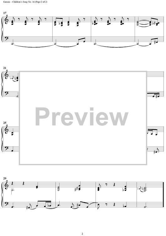 Digital Sheet Music for Children's Song No. 16 by , Mike Garson scored for Piano Solo; id:315095