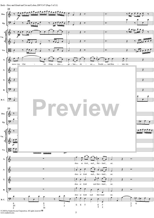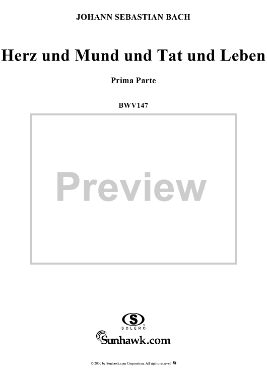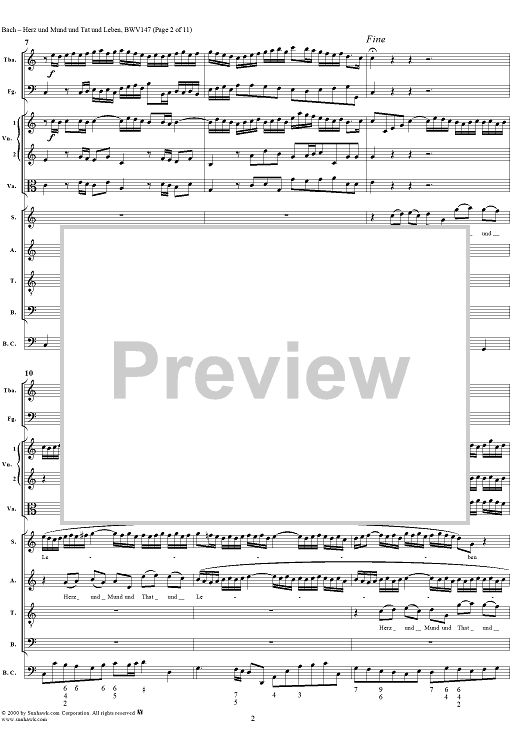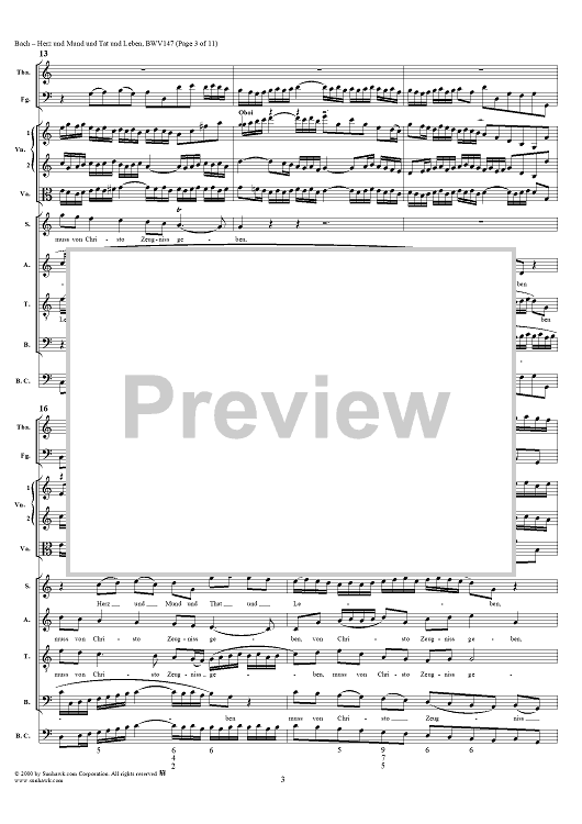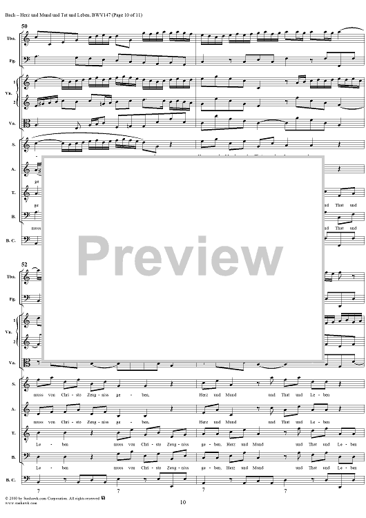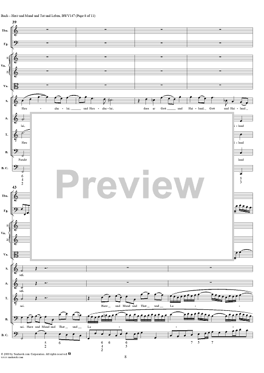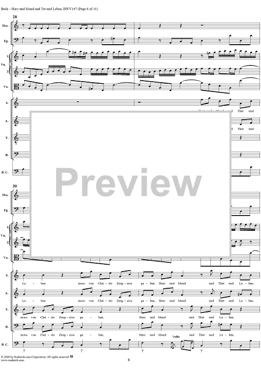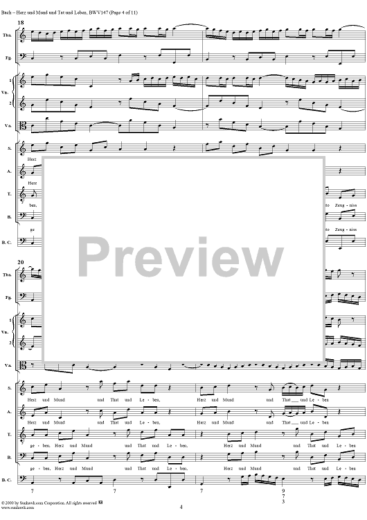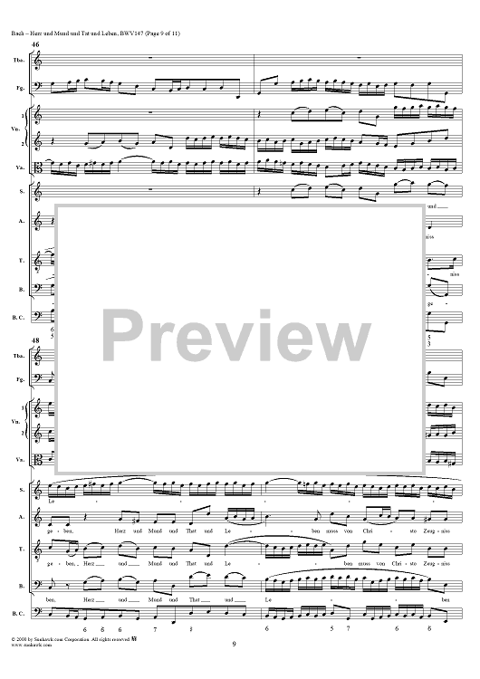 Digital Sheet Music for Choral from Cantata no. 147 ("Herz und Mund und That und Leben") - Full Score by Johann Sebastian Bach scored for Chorus and Orchestra; id:241423