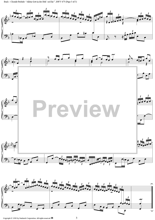 Digital Sheet Music for Chorale Prelude, BWV 675: Allein Gott in der Höh' sei Ehr by Johann Sebastian Bach scored for Organ Solo; id:95334