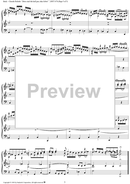 Digital Sheet Music for Chorale Prelude, BWV 678: Dies sind die heil'gen zehn Gebot by Johann Sebastian Bach scored for Organ Solo; id:95337