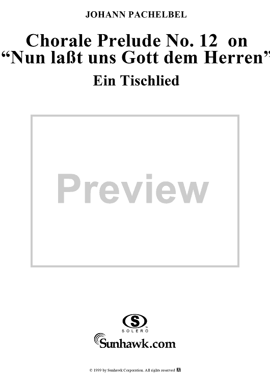 "Chorale Preludes, Part II, Ein tischlied, 12. Nun laßt uns Gott dem Herren" Sheet Music by Johann Pachelbel