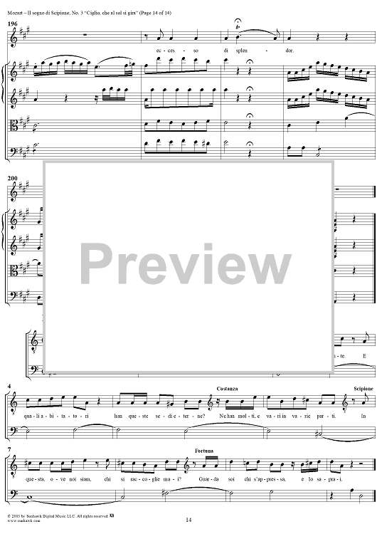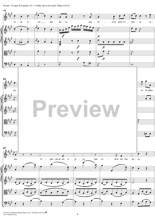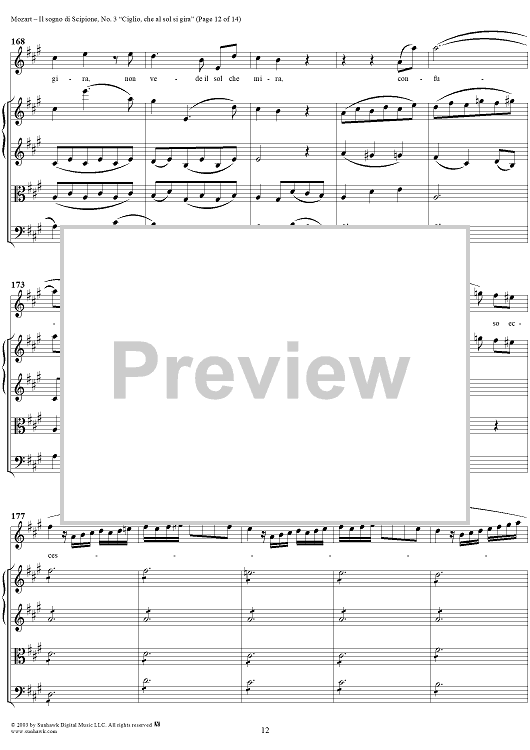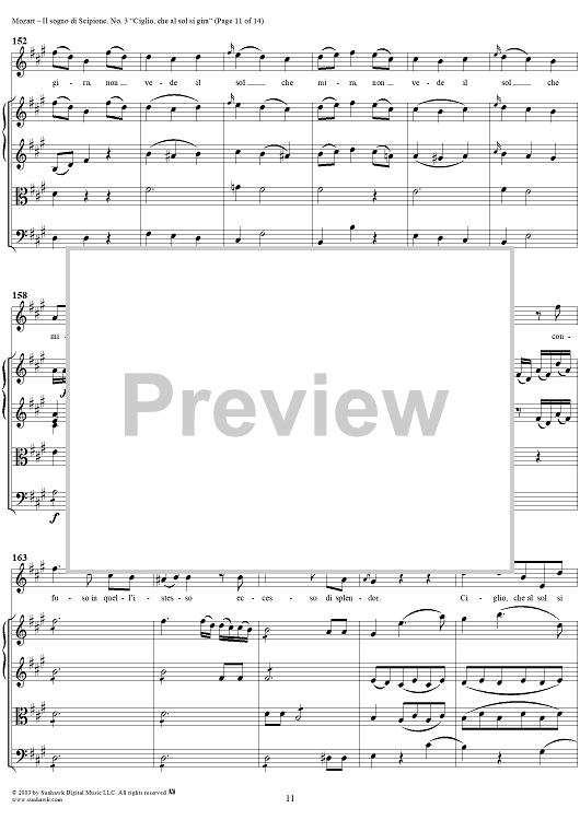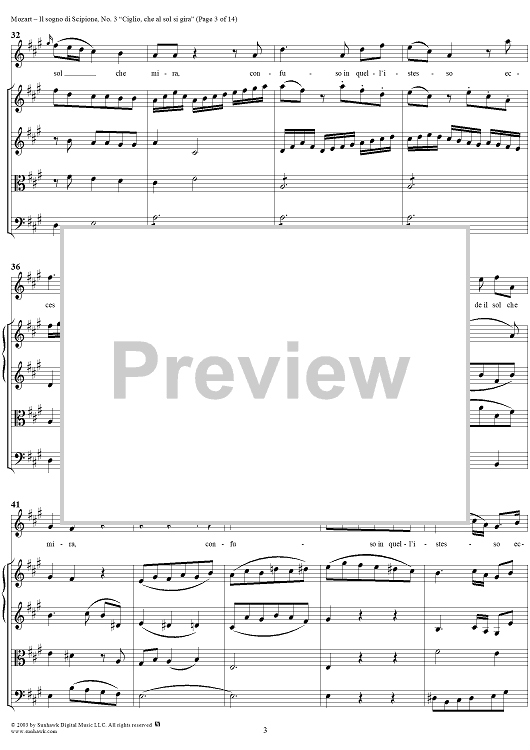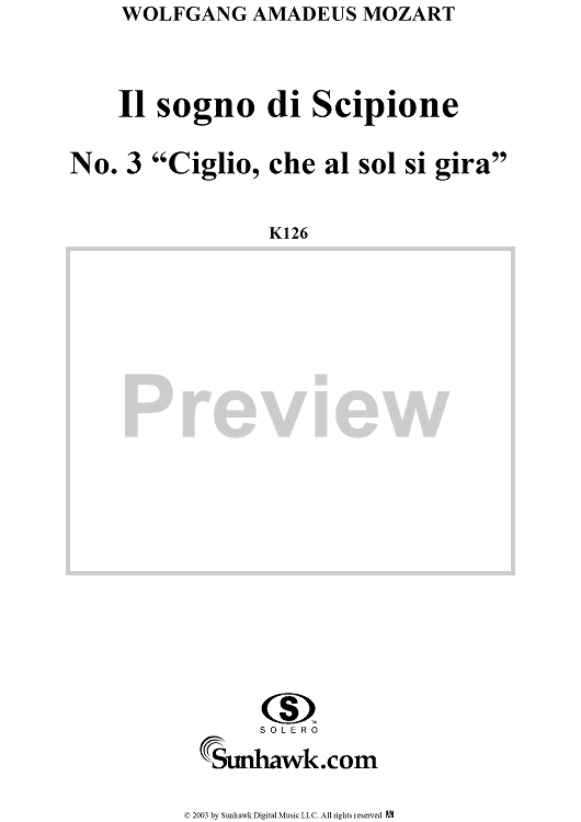 Digital Sheet Music for Ciglio, che al sol si gira (Aria), No. 3 from "Il Sogno di Scipione" - Full Score by Wolfgang Amadeus Mozart scored for Soli/SATB/Orchestra; id:291170