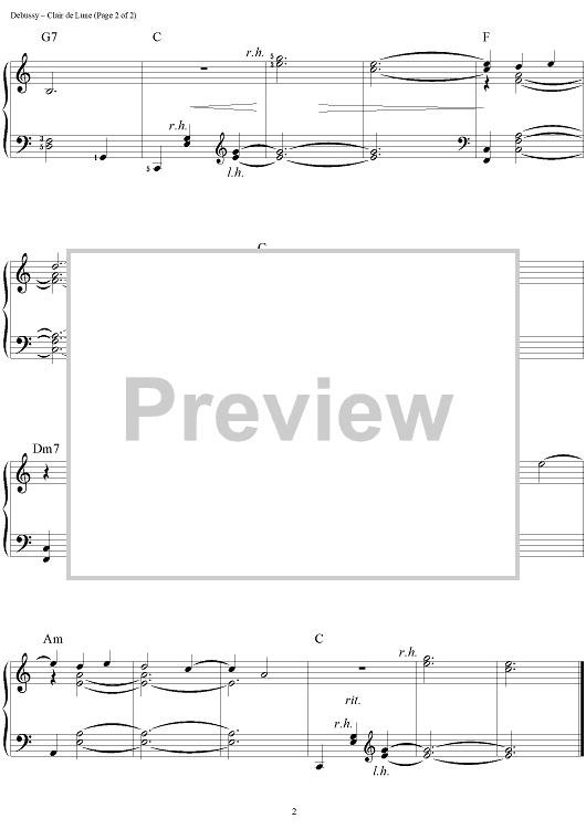 Digital Sheet Music for Clair de Lune by Richard Bradley, Claude Debussy scored for Easy Piano; id:292445