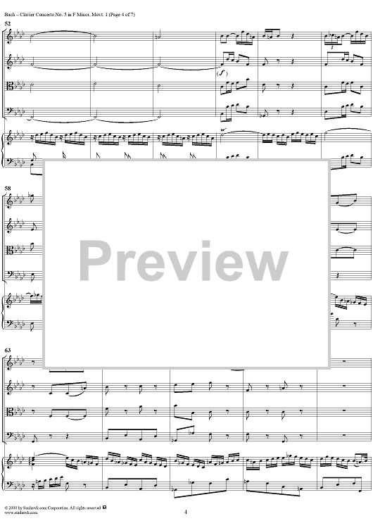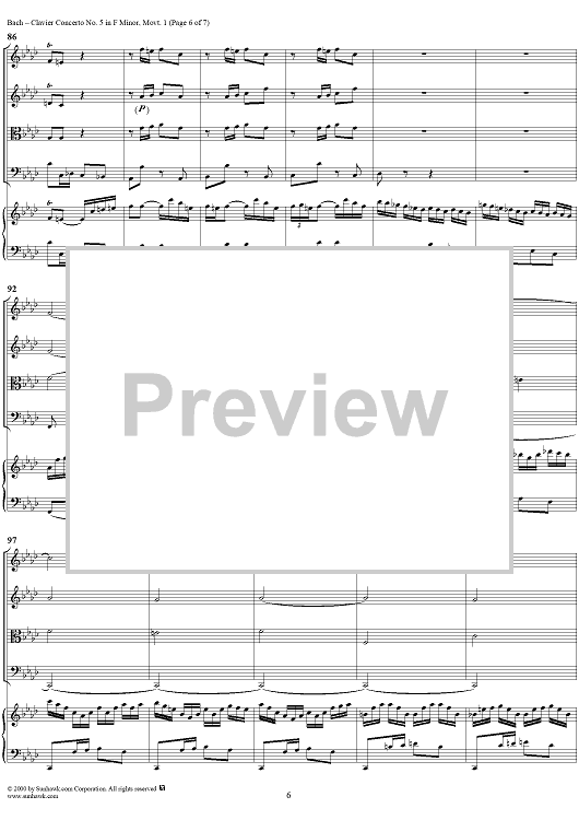 Digital Sheet Music for Clavier Concerto No. 5 in F Minor, Movement 1 - Score by Johann Sebastian Bach scored for Piano and Orchestra; id:236625