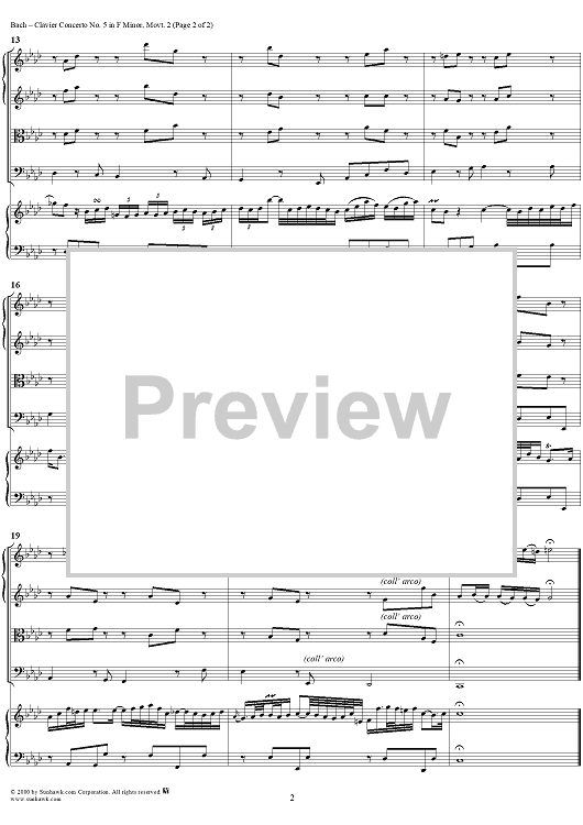 Digital Sheet Music for Clavier Concerto No. 5 in F Minor, Movement 2 - Score by Johann Sebastian Bach scored for Piano and Orchestra; id:236626