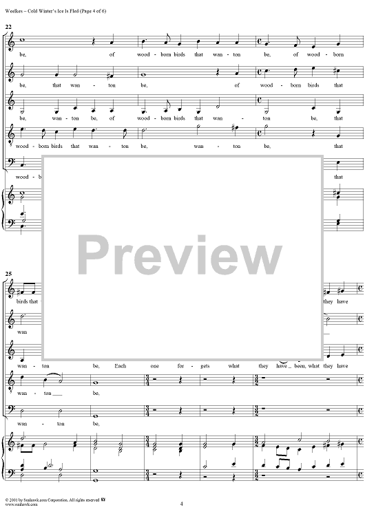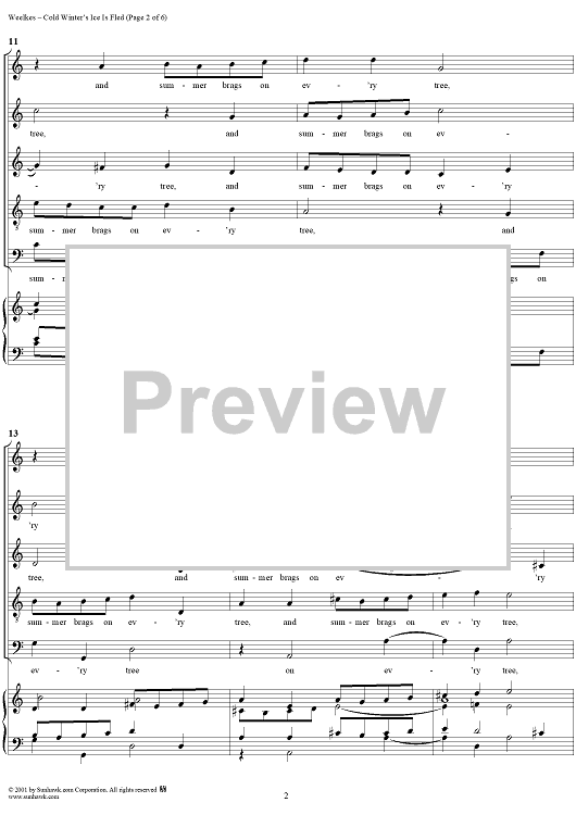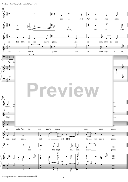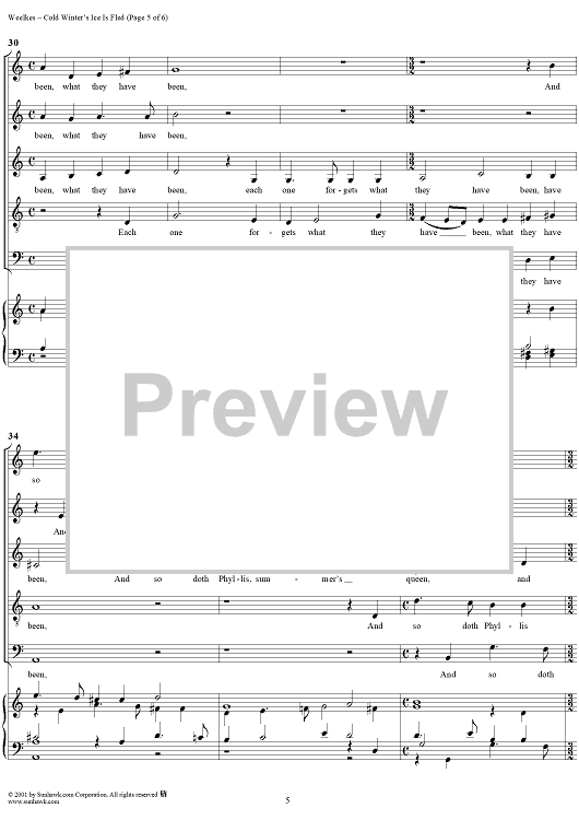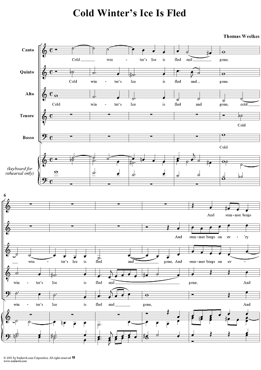 Digital Sheet Music for Cold Winter's Ice Is Fled by Thomas Weelkes scored for Five-part Mixed Chorus; id:262304