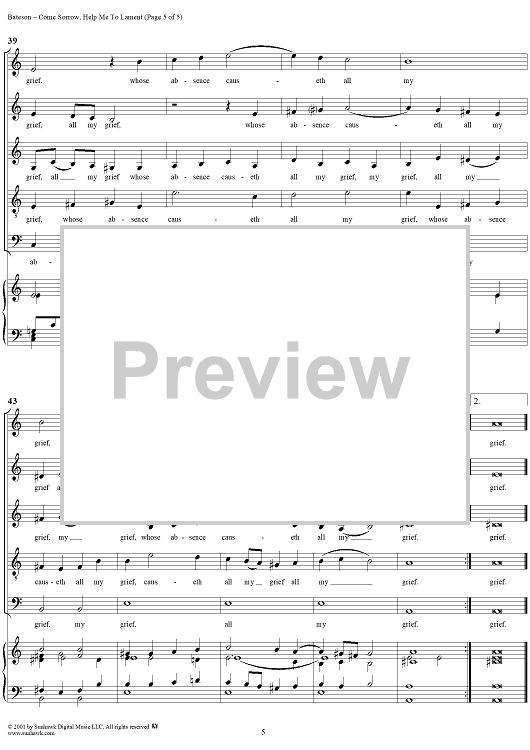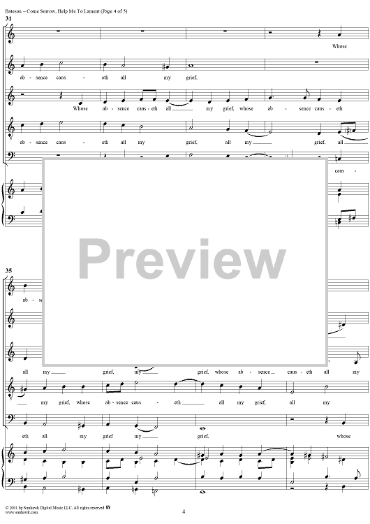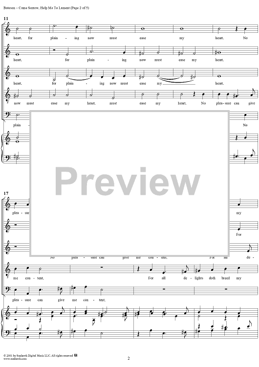 Digital Sheet Music for Come, Sorrow, Help Me to Lament by Thomas Bateson scored for Mixed Chorus; id:259576