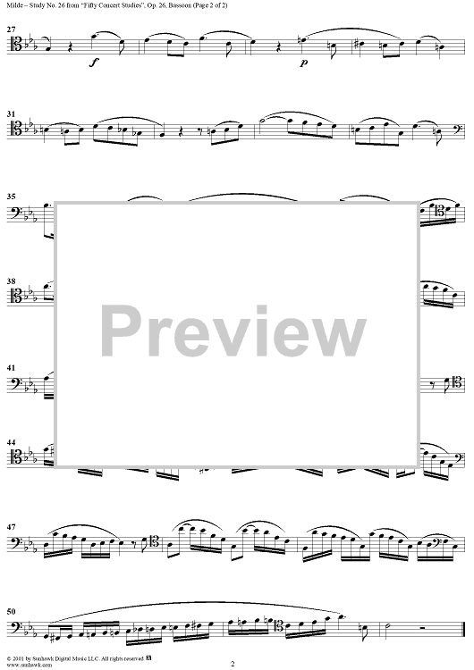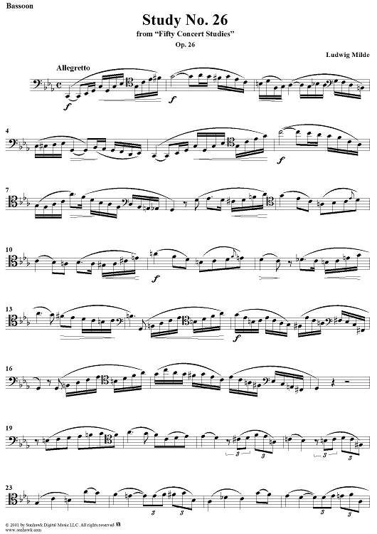 Digital Sheet Music for Concert Study No. 26 by Ludwig Milde scored for Bassoon; id:285626