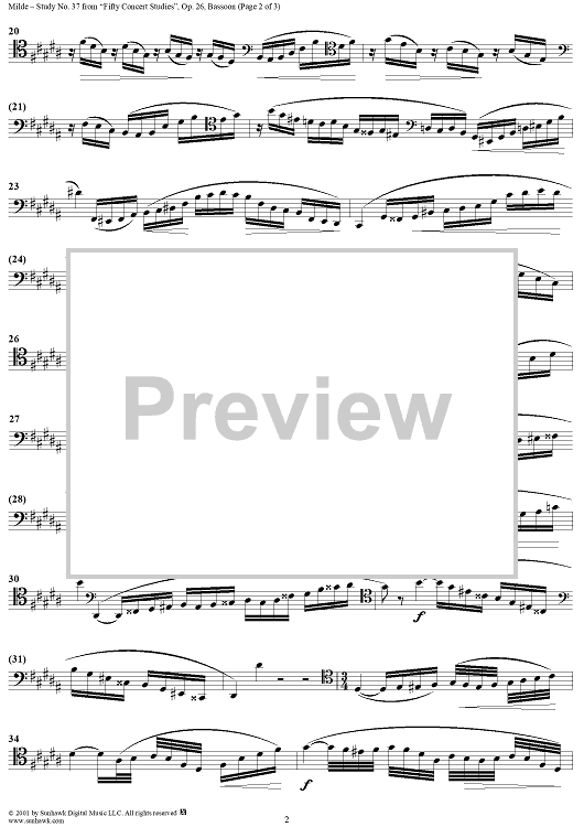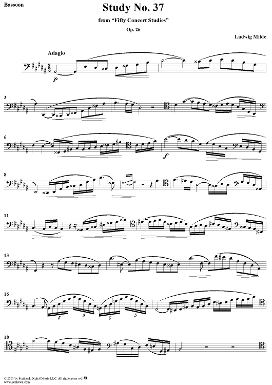 Digital Sheet Music for Concert Study No. 37 by Ludwig Milde scored for Bassoon; id:285638