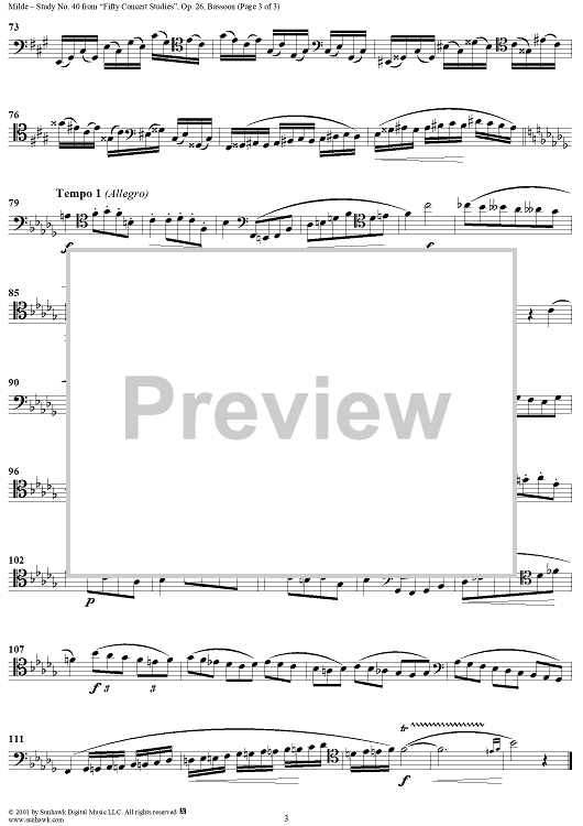 Digital Sheet Music for Concert Study No. 40 by Ludwig Milde scored for Bassoon; id:285642