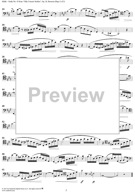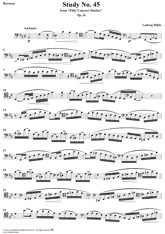 Digital Sheet Music for Concert Study No. 45 by Ludwig Milde scored for Bassoon; id:285647