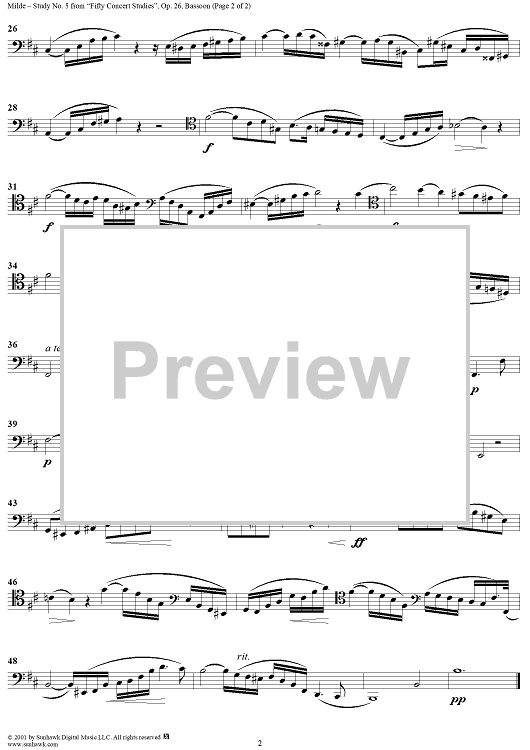Digital Sheet Music for Concert Study No. 5 by Ludwig Milde scored for Bassoon; id:285652