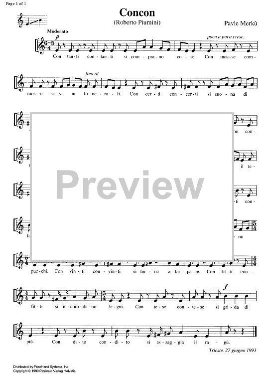"Concon" Sheet Music by Pavle Merkù