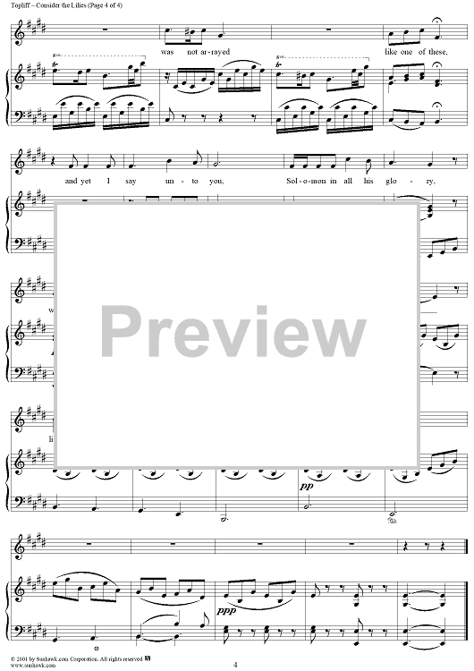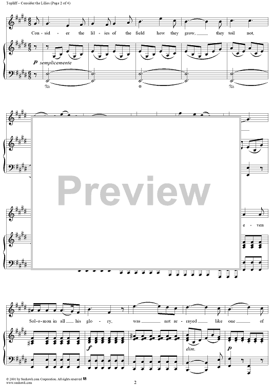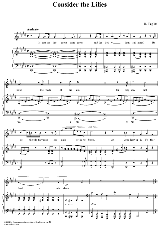Digital Sheet Music for Consider The Lillies by R. Topliff scored for Voice/Piano; id:265564