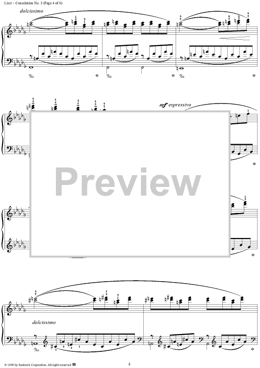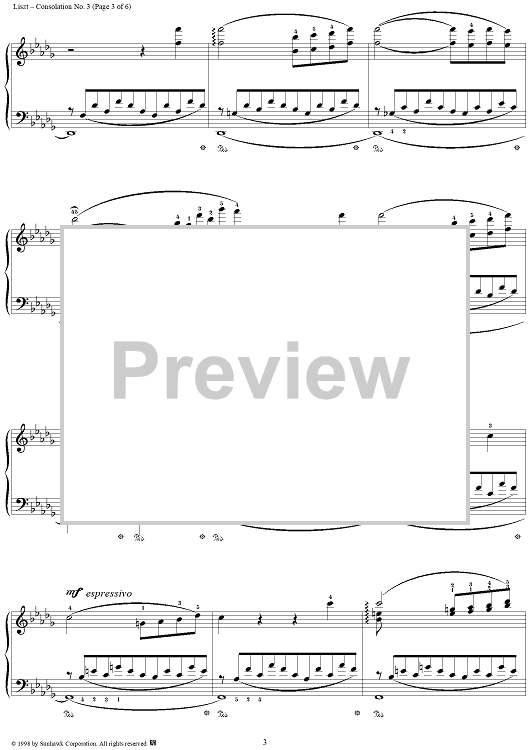 Digital Sheet Music for Consolation No. 3 by Franz Liszt scored for Piano Solo; id:250707