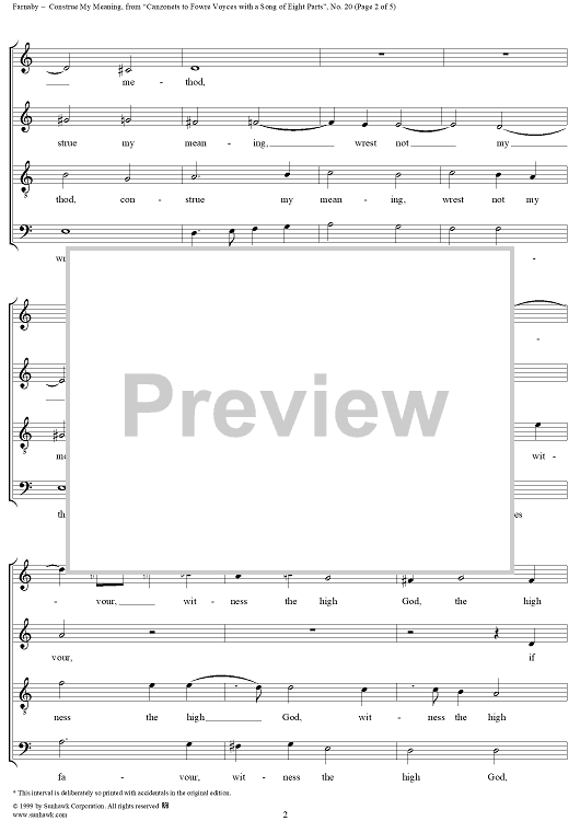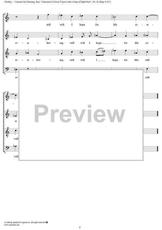 Digital Sheet Music for Construe My Meaning - From "Canzonets to Fowre Voyces with a Song of Eight Parts" by Giles Farnaby, Rev. Edmund Horace Fellowes scored for Four-part Mixed Chorus; id:269689