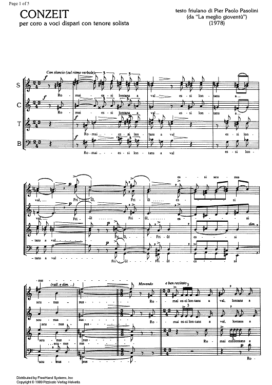Digital Sheet Music for Conzeit by , Albino Perosa scored for Tenor Solo/Choir; id:331199
