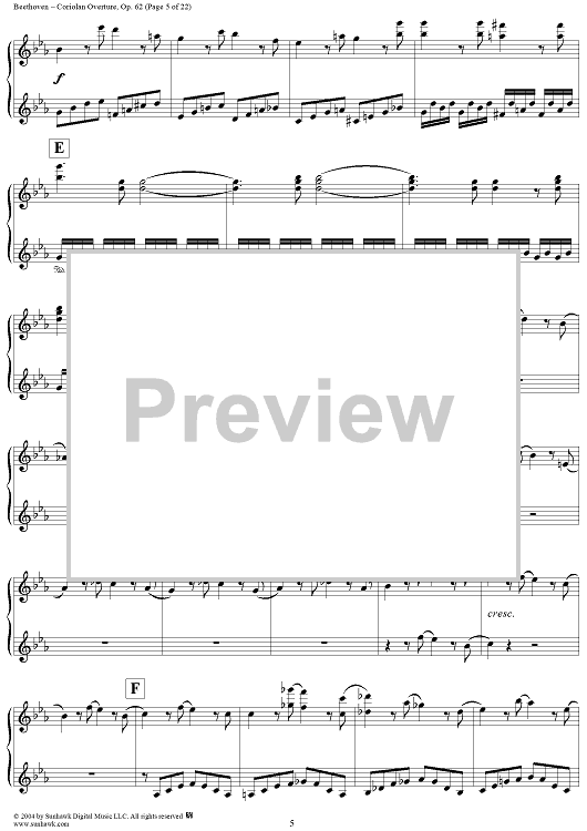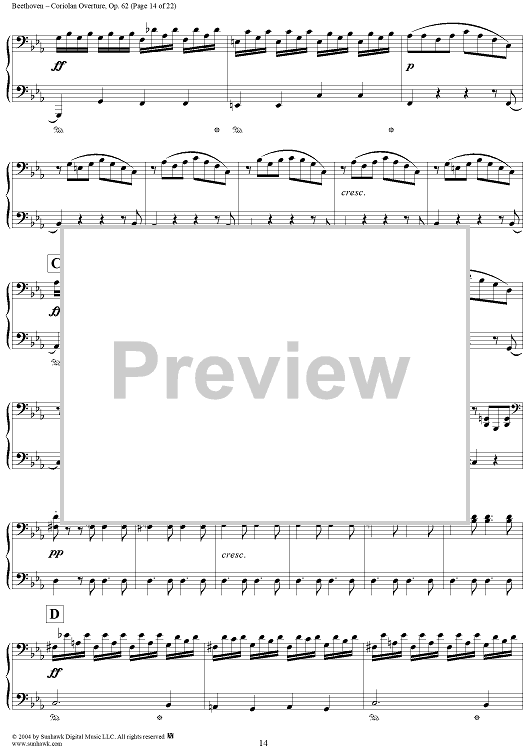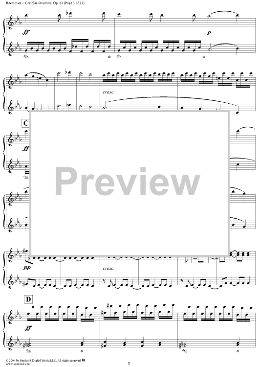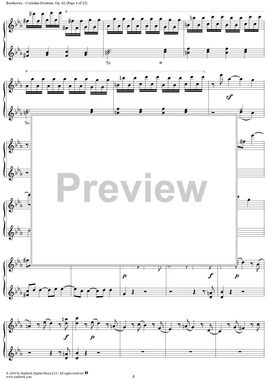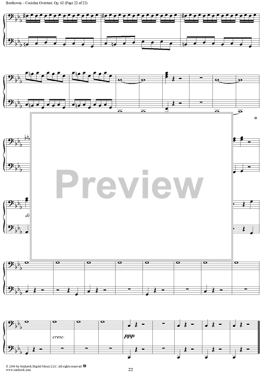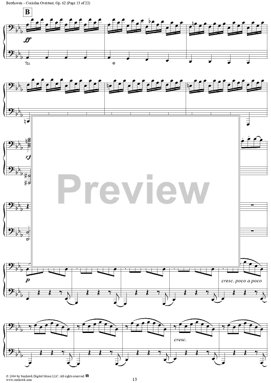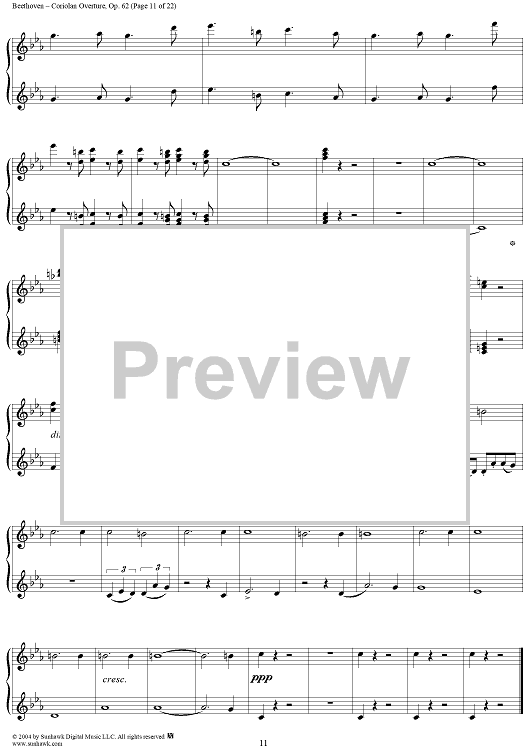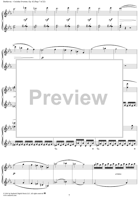 Digital Sheet Music for Coriolan Overture by Ludwig van Beethoven scored for 1 Piano, 4 Hands; id:296363