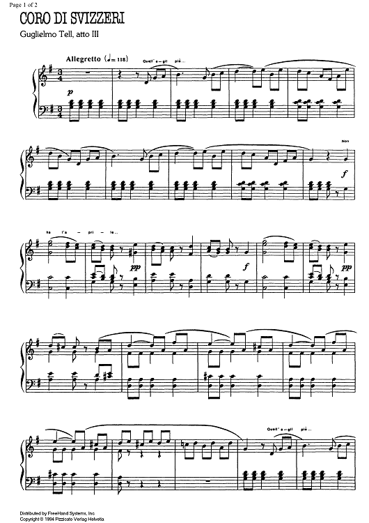 "Coro di Svizzeri from Wilhelm Tell" Sheet Music by Gioachino Rossini