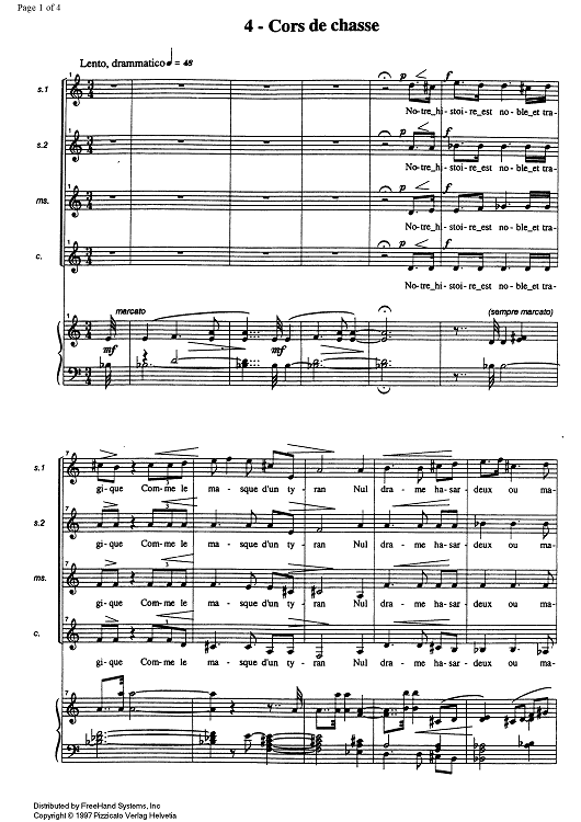 Digital Sheet Music for Cors de chasse by , Marco Sofianopulo scored for Female Chorus/Piano; id:330822