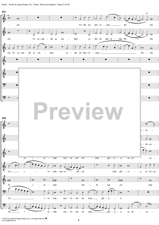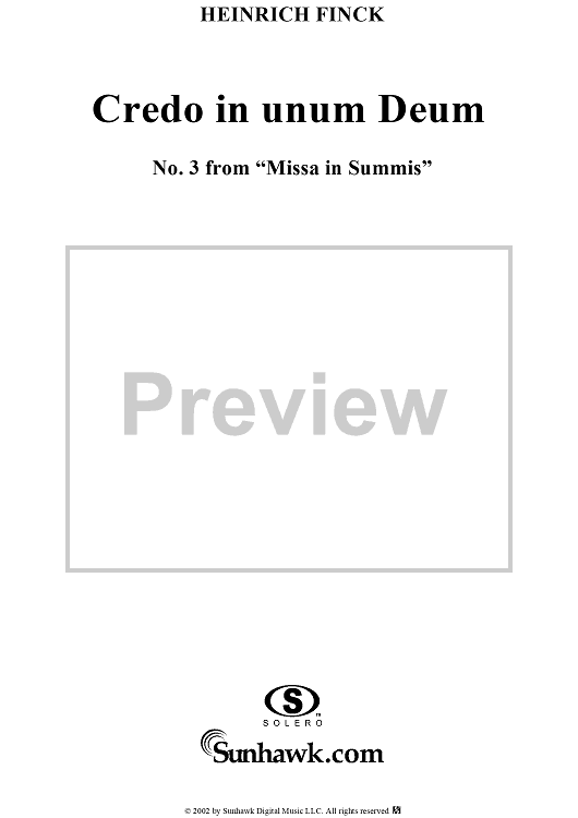 Digital Sheet Music for Credo in unum Deum - No. 3 from "Missa In Summis" by Heinrich Finck scored for Mixed Chorus; id:266834