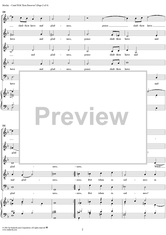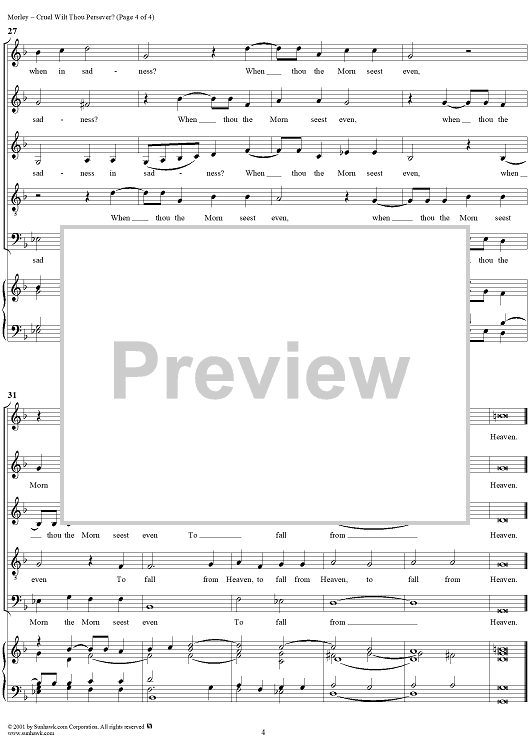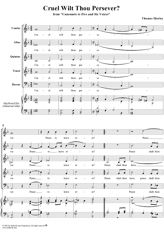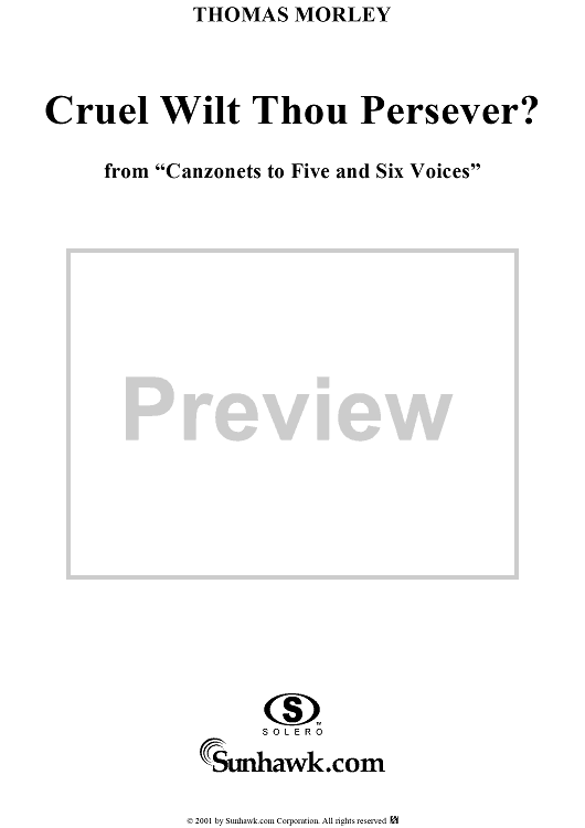 Digital Sheet Music for Cruel Wilt Thou Persever by Thomas Morley scored for Five-part Mixed Chorus; id:259787