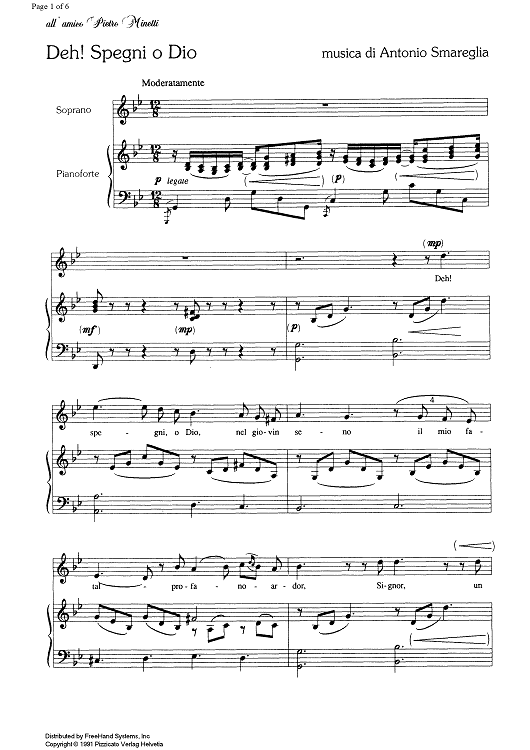 "Deh! Spegni o Dio" Sheet Music by Antonio Smareglia