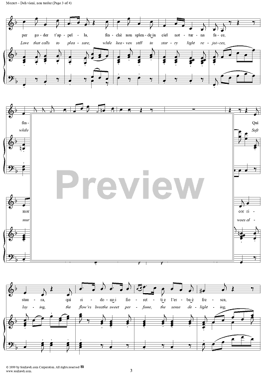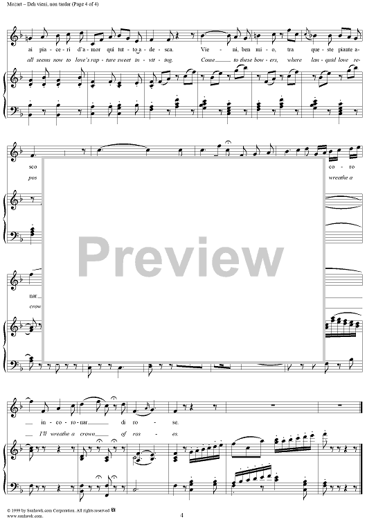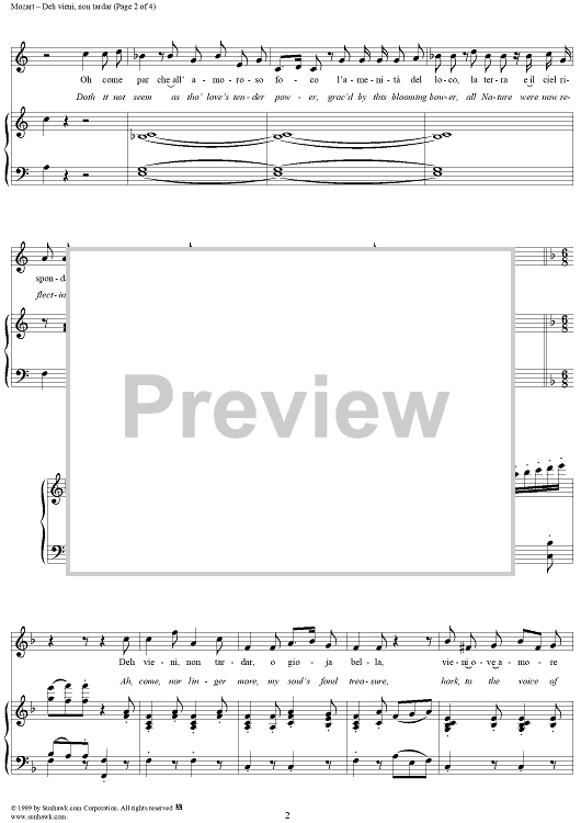 Digital Sheet Music for Deh vieni, non tardar - From "Le Nozze di Figaro" by Wolfgang Amadeus Mozart scored for Voice/Piano; id:254372