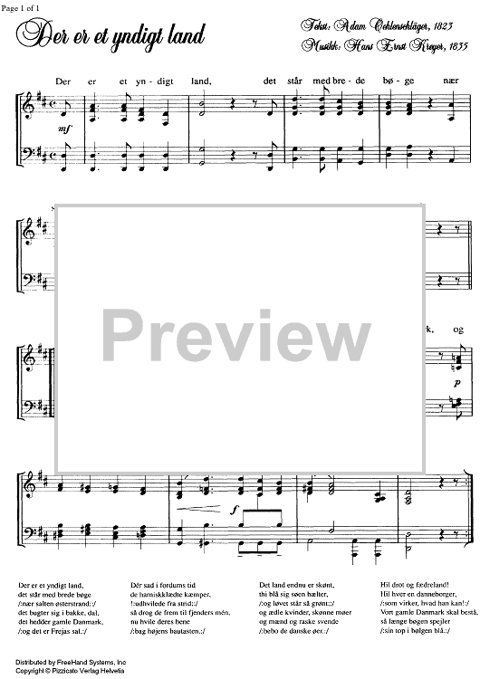 Digital Sheet Music for Denmark - Der er et yndigt land by Hans Ernst Kroyer scored for Piano/Vocal; id:329574