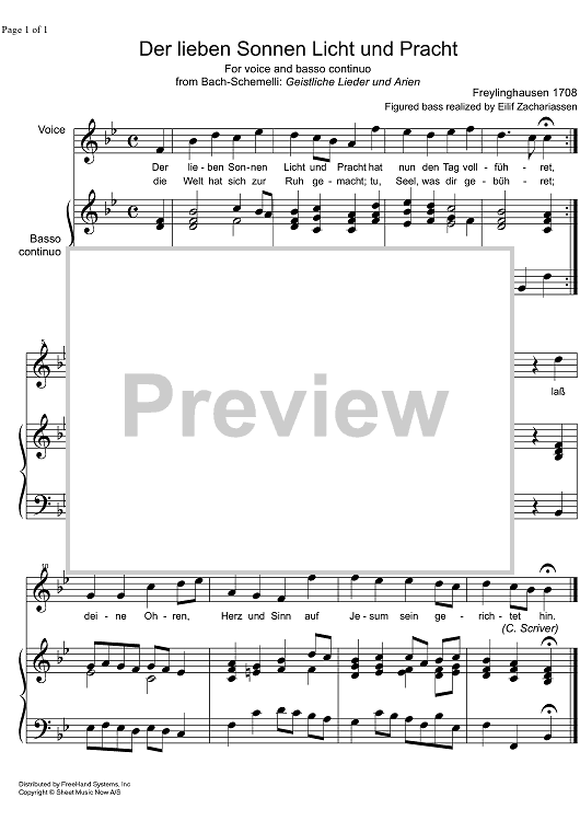 Digital Sheet Music for Der lieben Sonne Licht und Pracht by Johann Anastasius Freylinghausen, Eilif Zachariassen scored for Voice/Continuo; id:325893