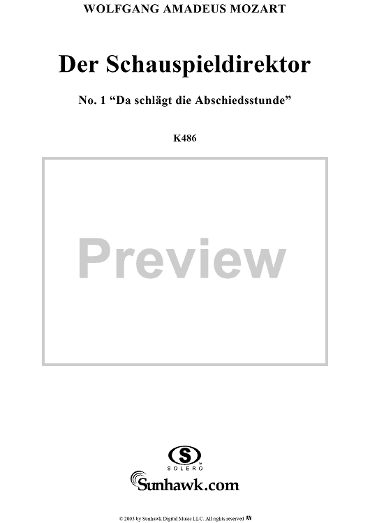 Digital Sheet Music for Der Schauspieldirektor - Full Score by Wolfgang Amadeus Mozart scored for Voice and Orchestra; id:292266