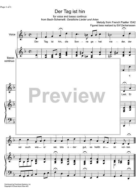 Digital Sheet Music for Der Tag ist hin by Unknown Writer, Eilif Zachariassen scored for Voice/Continuo; id:325894