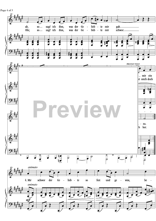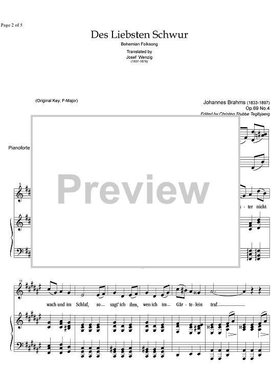 Digital Sheet Music for Des Liebsten Schwur Op.69 No. 4 by , Johannes Brahms scored for Soprano or Tenor/Piano; id:336058