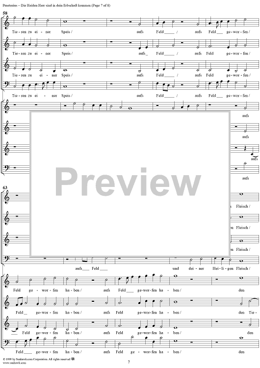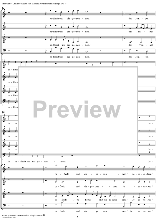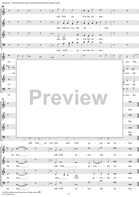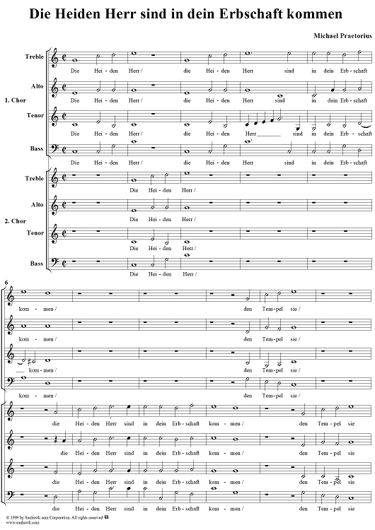 Digital Sheet Music for Die Heiden Herr sind in dein Erbschaft kommen by Michael Praetorius scored for Mixed Chorus; id:254749