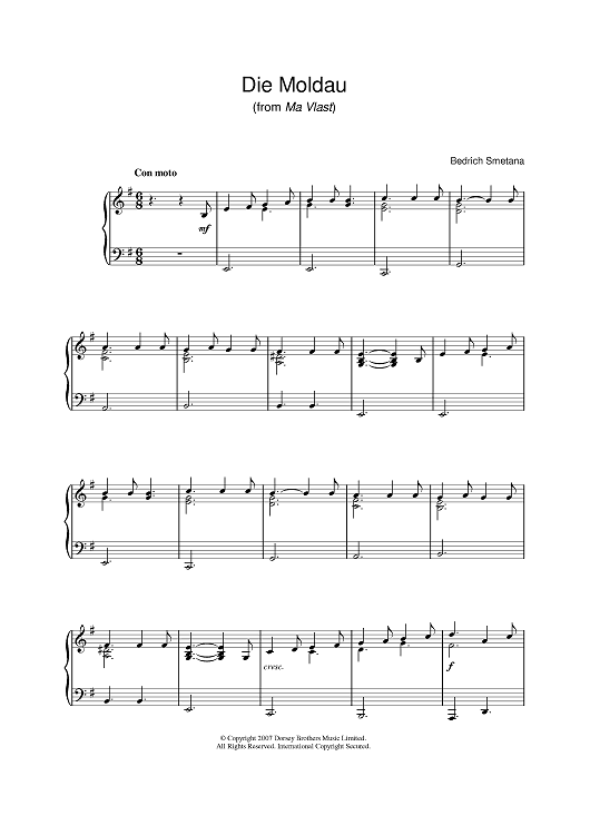 Digital Sheet Music for Die Moldau (from Ma Vlast) by Bedrich Smetana scored for Piano/Vocal/Chords; id:396775