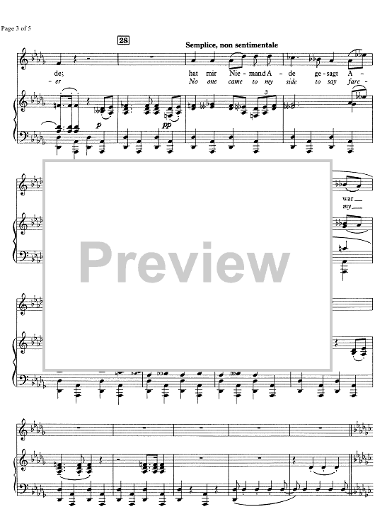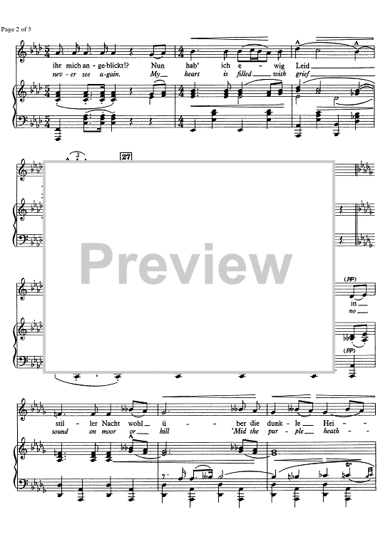 Digital Sheet Music for Die zwei Blauen Augen No. 4 by Gustav Mahler scored for Soprano or Tenor/Piano; id:332760