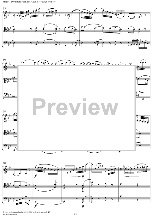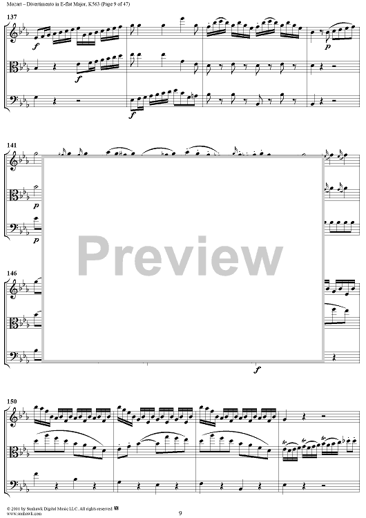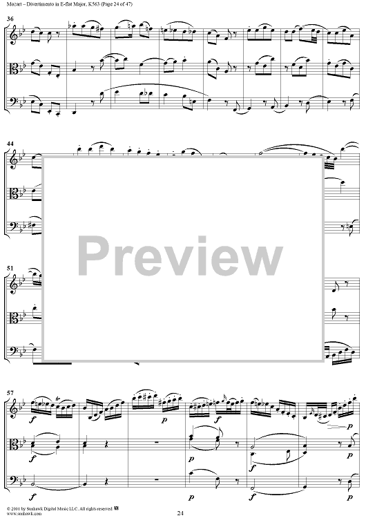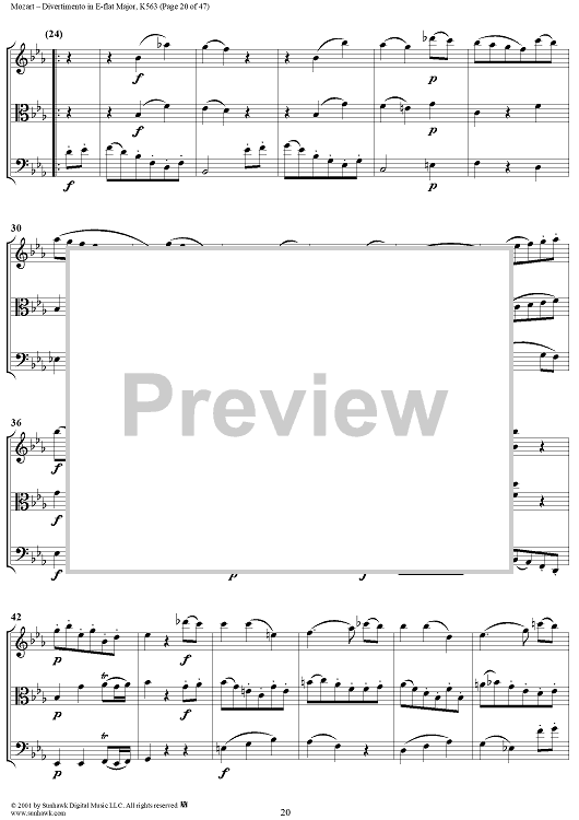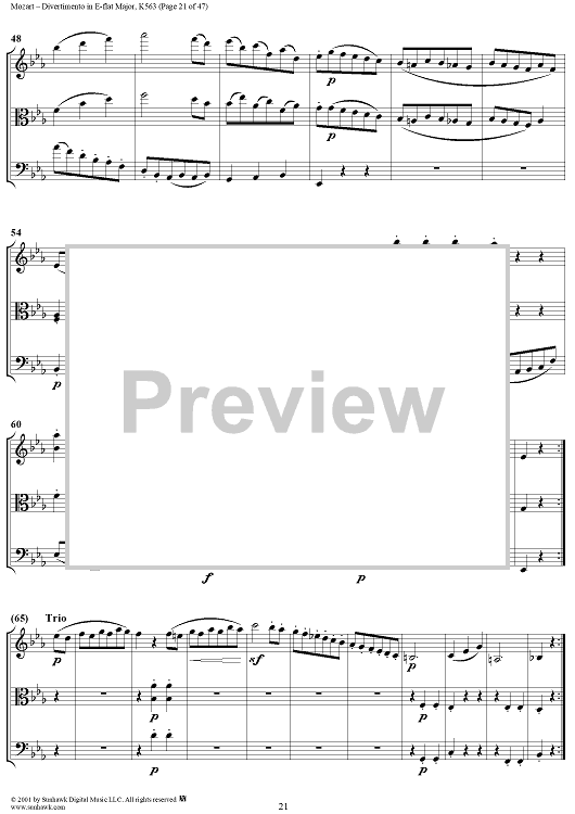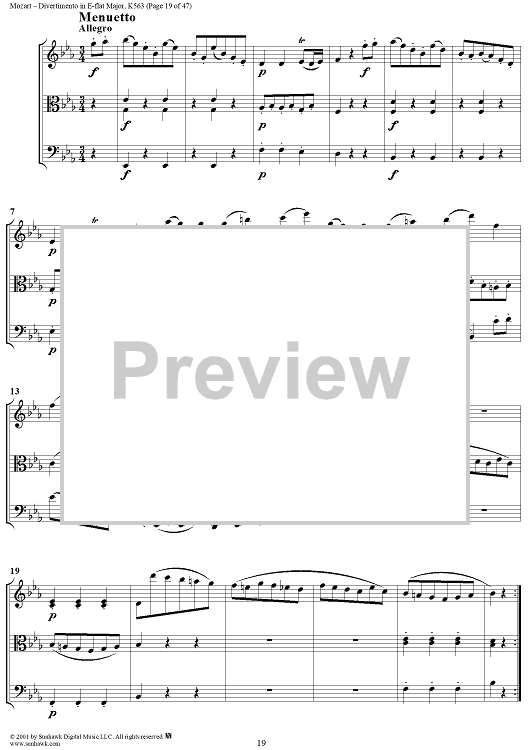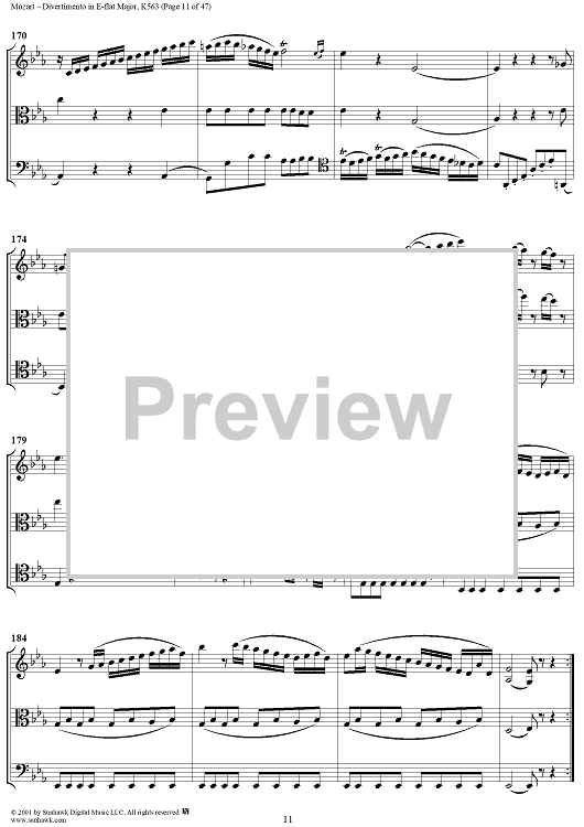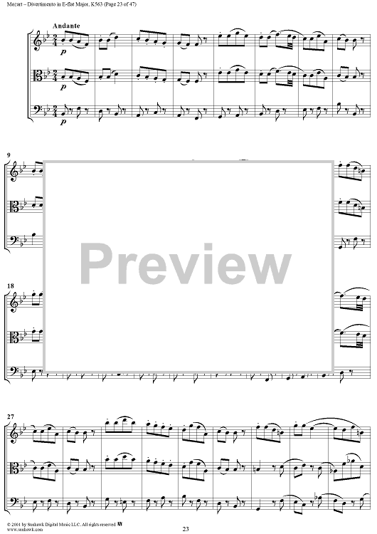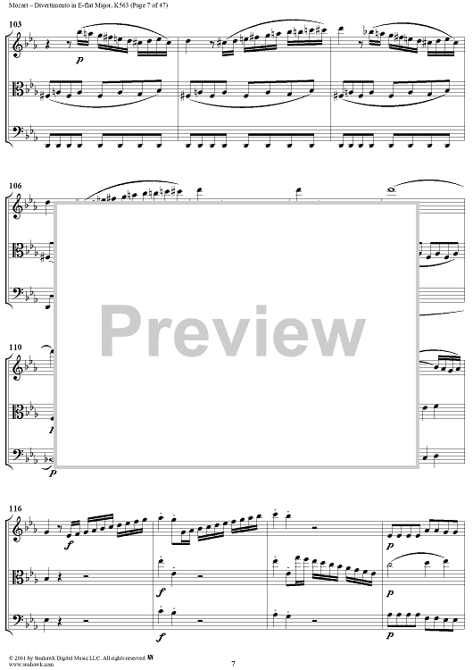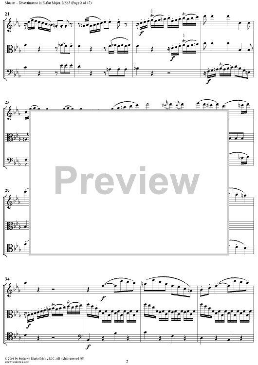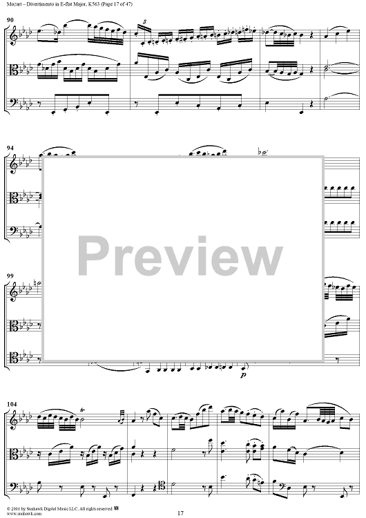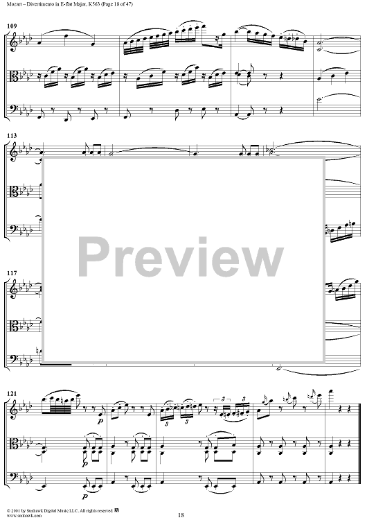 Digital Sheet Music for Divertimento in E-flat major, K563 by Wolfgang Amadeus Mozart scored for String Trio; id:242022