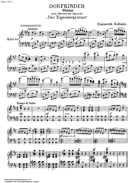 Digital Sheet Music for Dorfkinder Walzer by , Emmerich Kalman scored for Piano Solo; id:335956