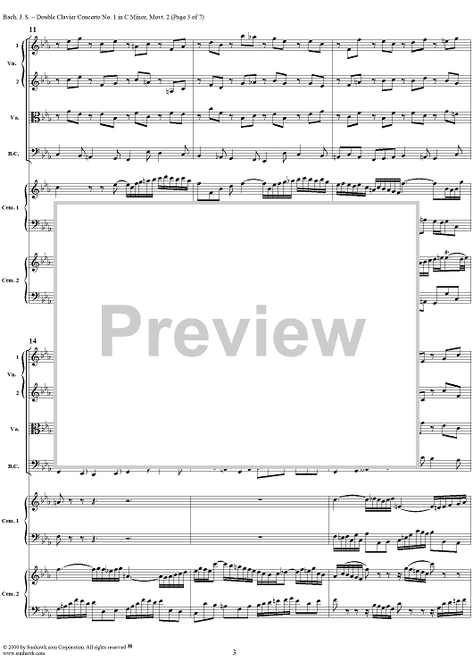 "Double Clavier Concerto No. 1 in C Minor, Movement 2 (BWV 1060) - Score" Sheet Music by Johann Sebastian Bach