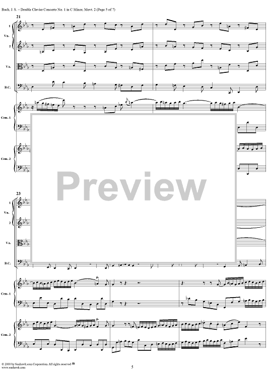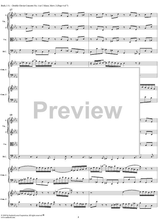 Digital Sheet Music for Double Clavier Concerto No. 1 in C Minor, Movement 2 (BWV 1060) - Score by Johann Sebastian Bach scored for 2 Pianos/Strings; id:241449